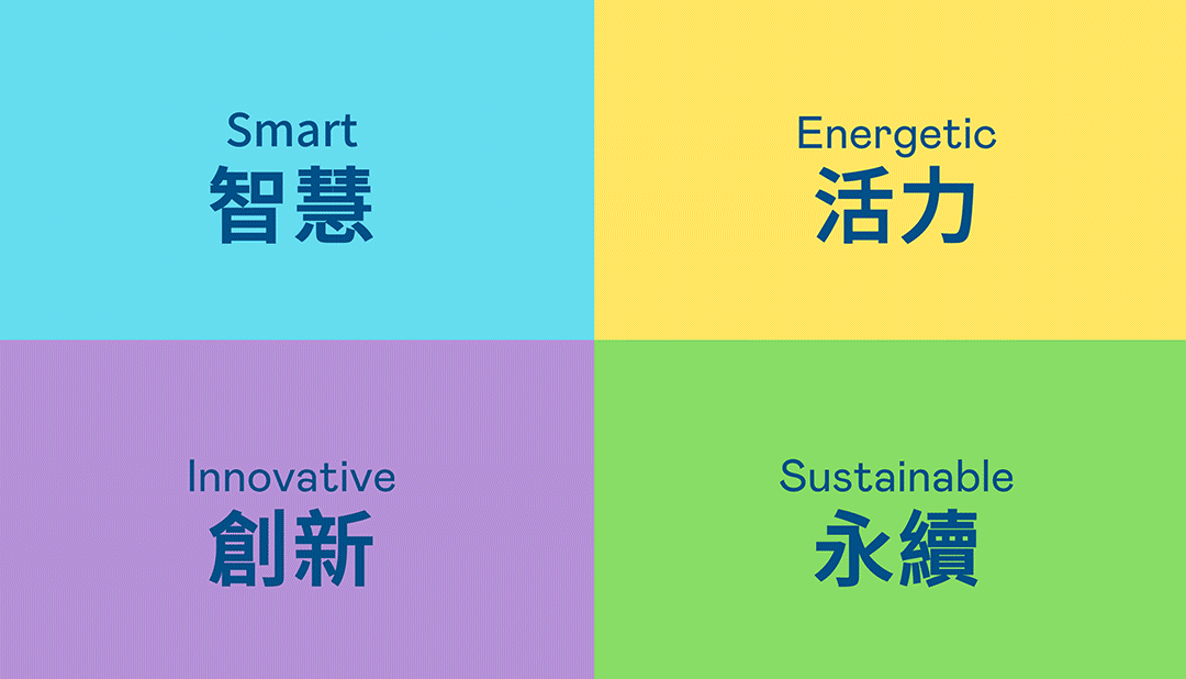 从稳重、信赖的巅峰国际蓝开创新色彩,注入象征智慧蓝、活力黄、创新紫、永续绿的品牌色及动态多变的几何图形,呼应不设限的「Possibilities」精神,代表多元的专业技术及领域,在碰撞中相互触动、融合、延伸,持续激荡出更多新的可能性。
